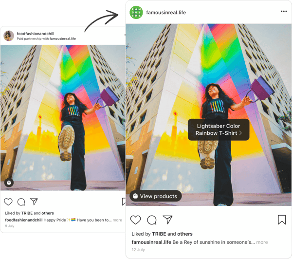 Product tags can also be placed in blocks of text, like post captions or in your bio –– these are called ‘product mentions’. You can use them separately, but brands that combine tags and mentions increase their average PDP views by three times, compared to feed tagging alone.